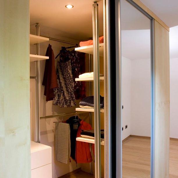 Impression eines Raumes mit einem Gleittürschrank aus Holz